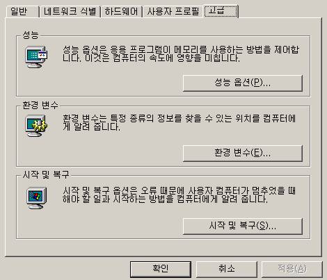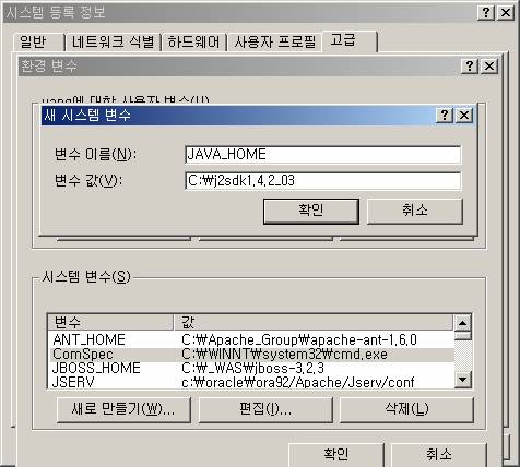 1) 내컴퓨터>>등록정보>>고급>>환경변수 클릭