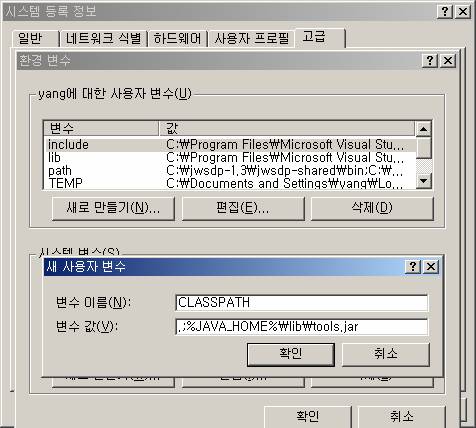 변수 값(V) : .;%JAVA_HOME%\lib\tools.jar